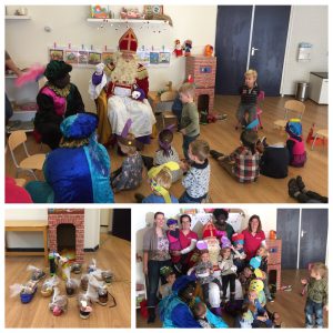 De peuters mochten de Sint helpen met inpakken en ze mochten hun schoen zetten.